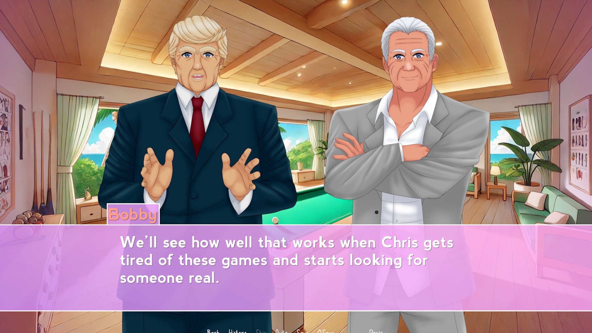Love Love 2024 The Love Election is a unique visual novel that combines romance and political intrigue on the picturesque shores of a Florida resort. In this game, players find themselves amidst a reality TV show where presidential candidates compete not just for votes, but for your heart. Over the course of four eventful days, you'll engage in flirtatious exchanges, heartfelt moments, and intense rivalries. However, a mysterious figure lurks in the background, attempting to manipulate the outcome. Your mission is to uncover the truth and decide whether true love can triumph over deceit.