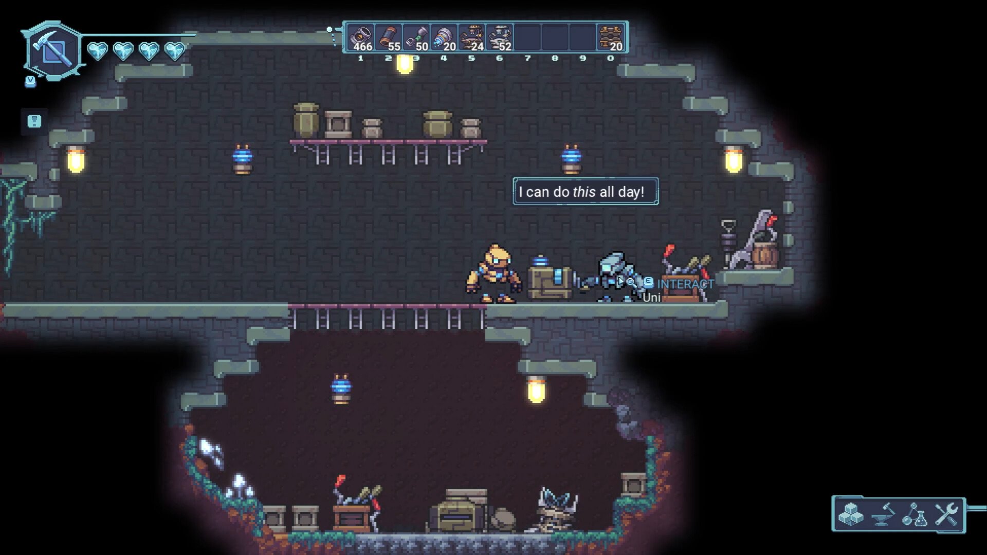 • Explore: Venture into diverse biomes to locate new ore deposits, hidden treasures, and interact with unique inhabitants. Each area offers fresh challenges and rewards.