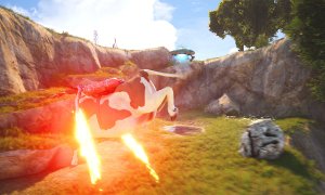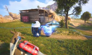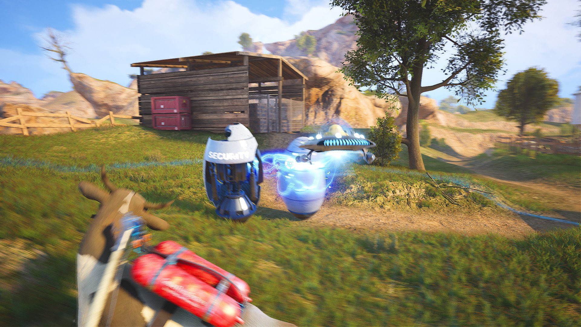 In addition to controlling the cow, you can switch to controlling a UFO at any moment. The UFO can move objects with a Magnetic Beam, set things on fire with a Plasma Gun, and use a Taser to shock enemies or power up electrical appliances.