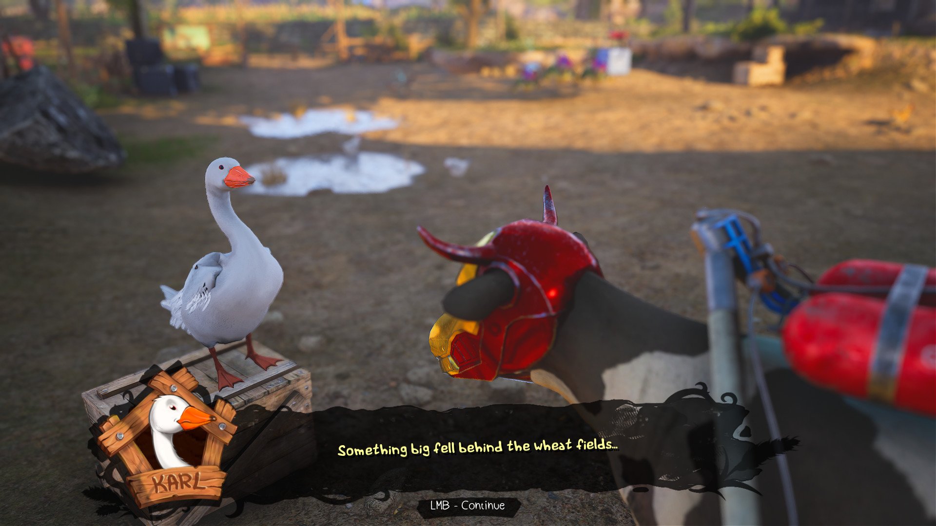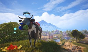 As the protagonist, Duchess the cow, you can head-butt, kick, eat grass, and drop cow-pats. These abilities help you explore the game world, interact with various environments, find beneficial types of grass, solve puzzles, and crush enemies with your mighty horns.