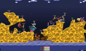 Worms Armageddon also boasts over 30 custom and comedy sound banks, featuring themes like stiff upper lip and Cyberworms, adding a humorous touch to the gameplay. The multiplayer mode introduces new features such as Handicapping, which allows you to add or deduct energy for a team, Allied Teams for strategic alliances, and unique elements like 'Worms Disease' and Home Runs. With these features and more, Worms Armageddon promises a fun and engaging experience for all players.