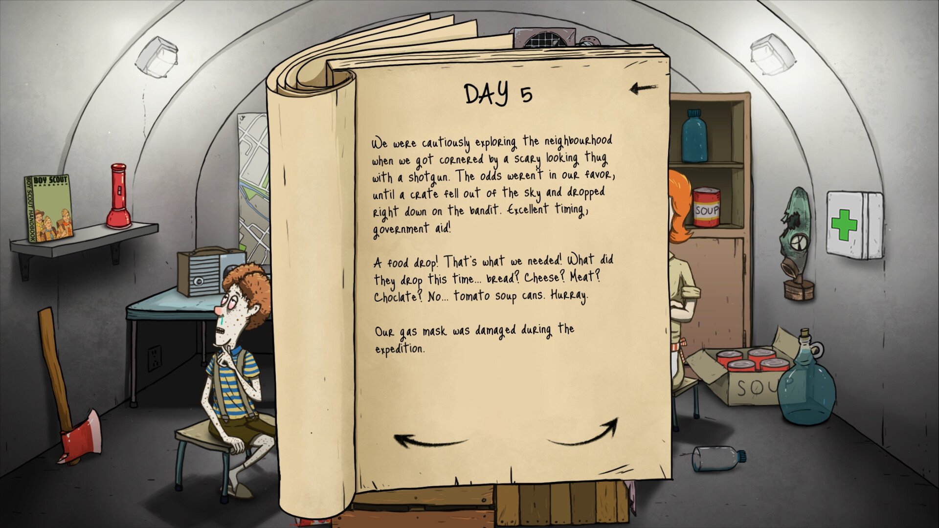 - Decide on critical actions in a post-apocalyptic world, such as whether to risk going outside, who will go without food, and how to handle mutant cockroach infestations.