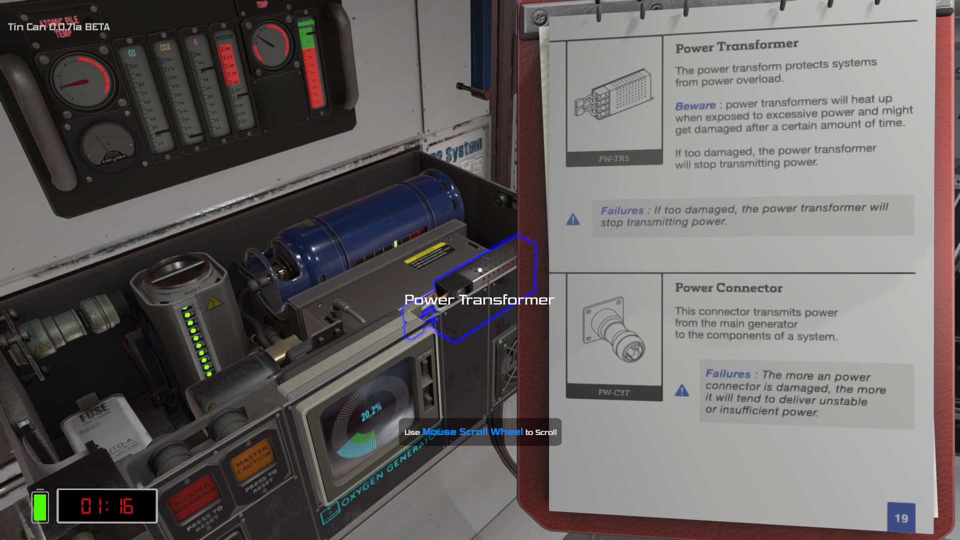 Get your hands dirty! All the systems inside your escape pod are made up of many different components, from fuses to air filters. They are all interconnected and have their own critical function.