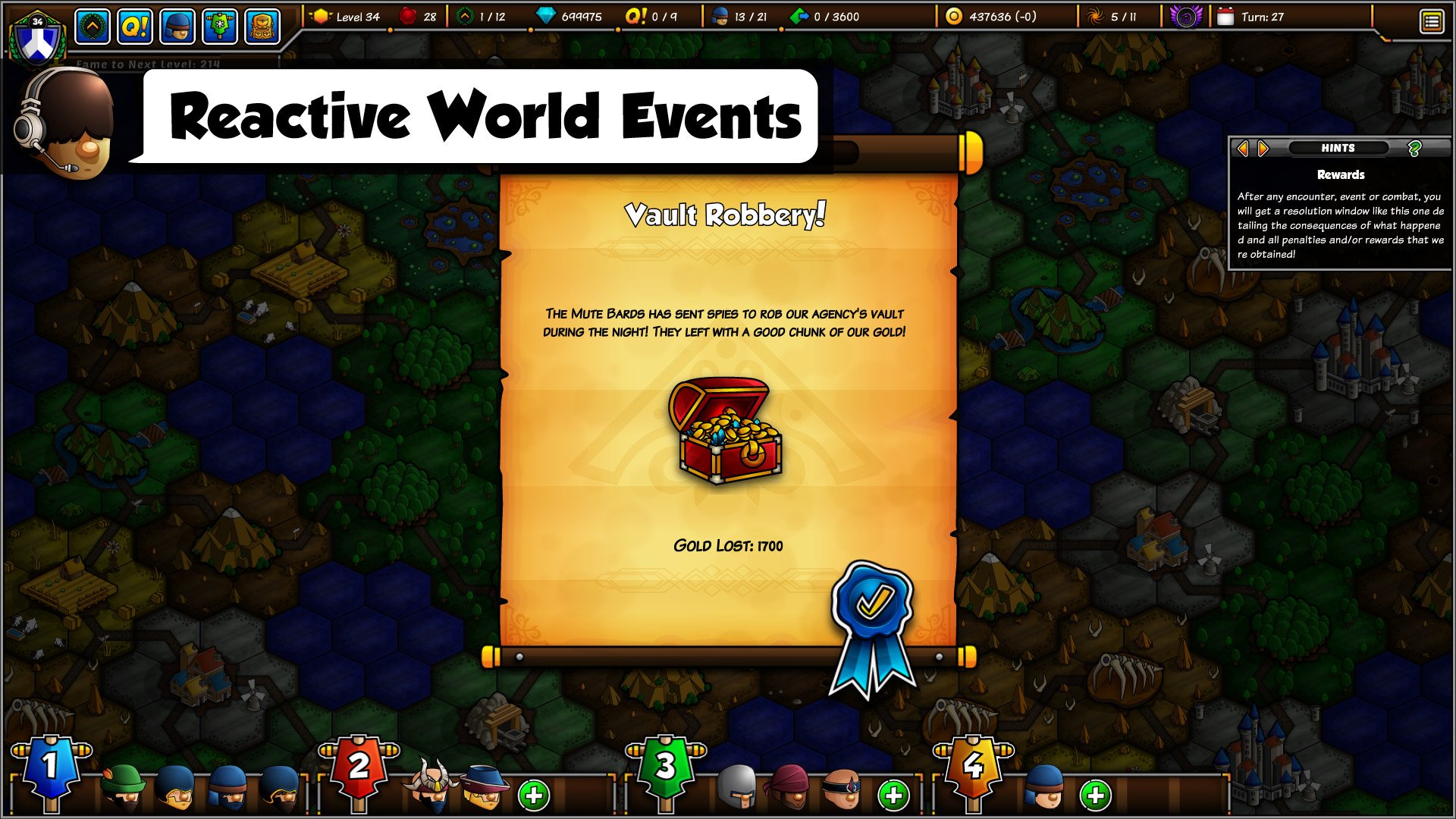 Epic Manager features an emergent narrative shaped by your actions, with random encounters and narrative mini-scenarios that offer various choices. Your decisions will influence the political landscape of Astraeus and affect your reputation with the game's 12 factions. As your agency grows, you'll unlock new abilities and specializations through a tech tree, tailoring your playstyle.