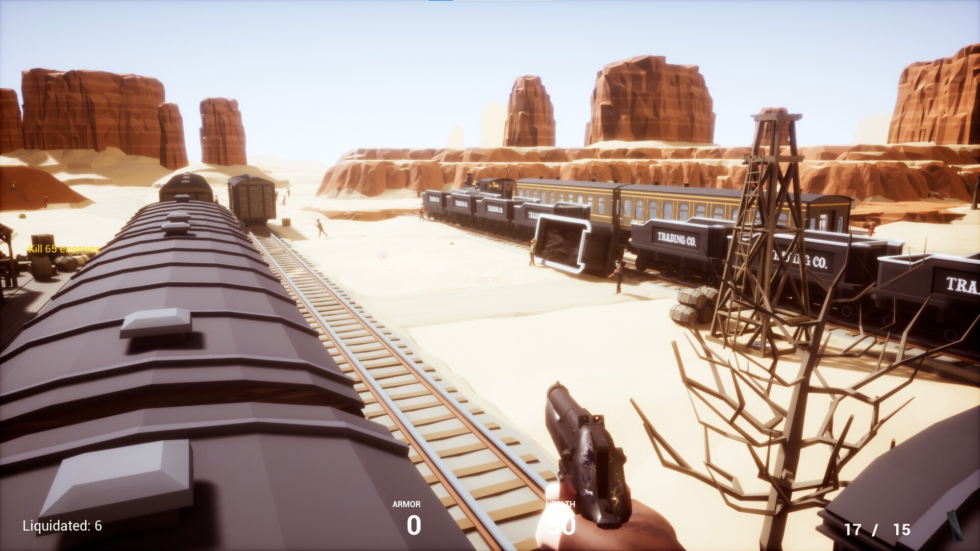PolyClassic: Wild is a fast-paced, first-person shooter that mixes retro shooter feelings with a modern low-poly aesthetic. Set against a Wild West backdrop, the game challenges you to eliminate every enemy that crosses your path. As you progress through the six levels, you'll face off against diverse foes—evil cowboys equipped with powerful shotguns, flamethrowers, and even swift close-combat skills. Each enemy brings its own threat, ensuring that every encounter remains unpredictable and intense.