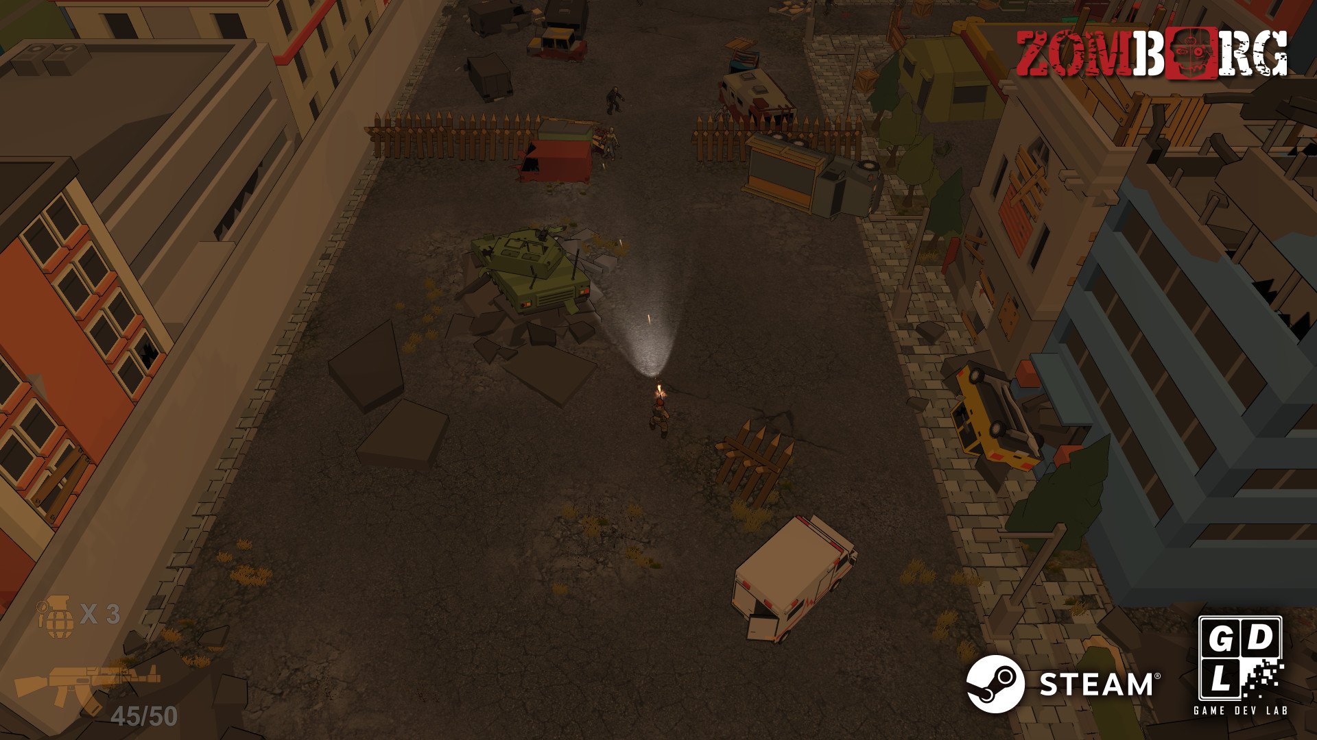 Zomborg is set in the year 2000, where the United Nations has established quarantine zones worldwide to contain an unknown virus pandemic. Although the containment is successful, it comes at a significant cost. Rumors spread about survivors trapped inside these zones and the origins of the virus, with footage showing reanimated infected corpses roaming the streets. Despite these rumors, no solid evidence is found.