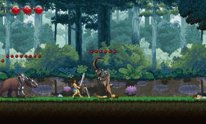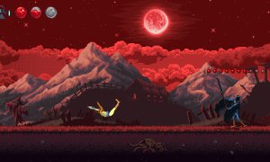 Driven Out - Driven Out is a challenging 2D side-scroller that combines deliberate, skill-based combat with a beautiful 16-bit retro aesthetic. In the game, a humble farmer is forced from her peaceful home into a chaotic world filled with dangerous, fantastical creatures. Despite her inexperience, she must use her wits to navigate a seamless world without any load screens and overcome foes by carefully reading their moves.