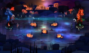 At the heart of Pyre is an action-packed three-on-three battle system. Before each Rite, you choose three characters from your party, equipping them with mystic talismans and powerful masteries to face off against a colorful array of adversaries. The outcome of these tactical encounters shifts the narrative, creating a branching story experience where there is never a traditional game over; whether you succeed or falter, your journey carries on.