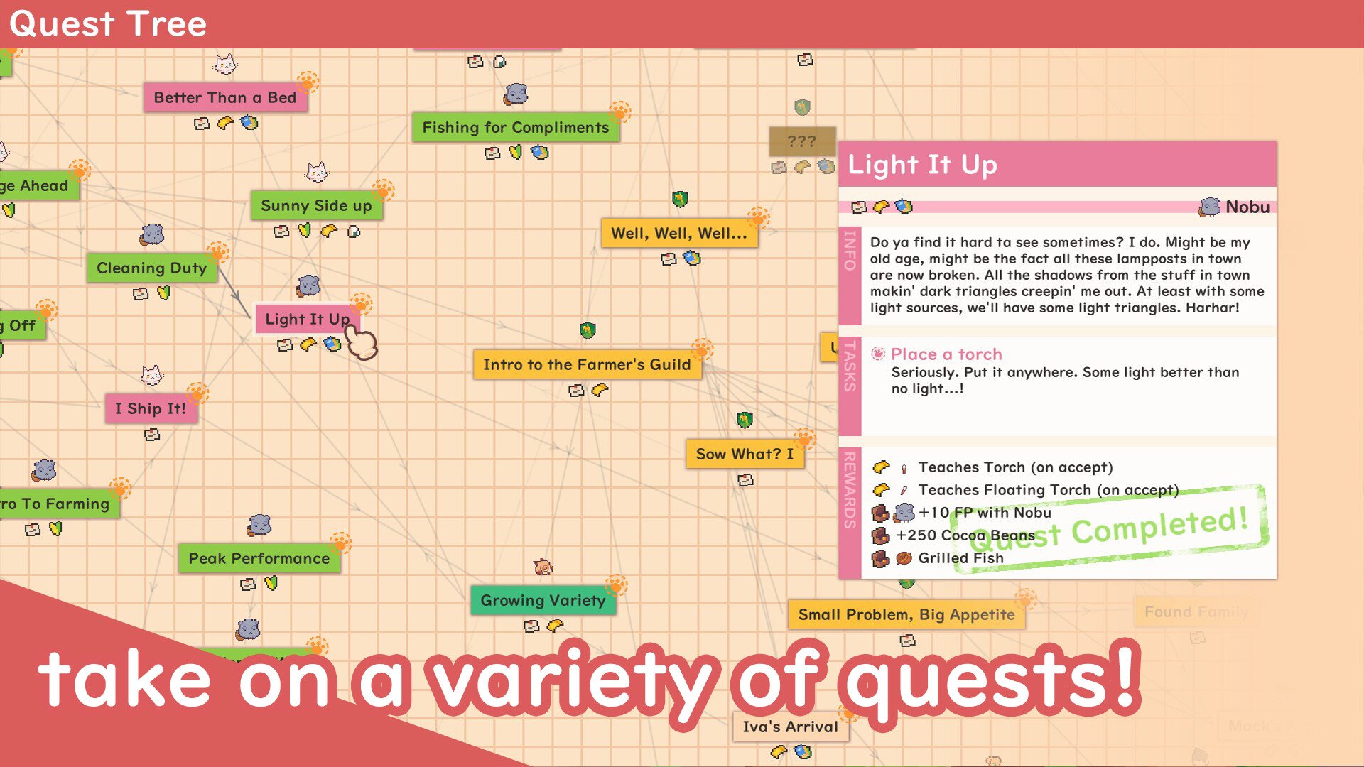 Meeting and interacting with a diverse cast of characters is a central part of the experience. With 26 unique villagers to befriend and 21 potential romance interests, you can dive into enriching narratives through quests, engaging dialogue, and memorable cutscenes. As you build relationships, you’ll also uncover the island’s deep lore and unravel secrets hidden within unique questlines and guild challenges.