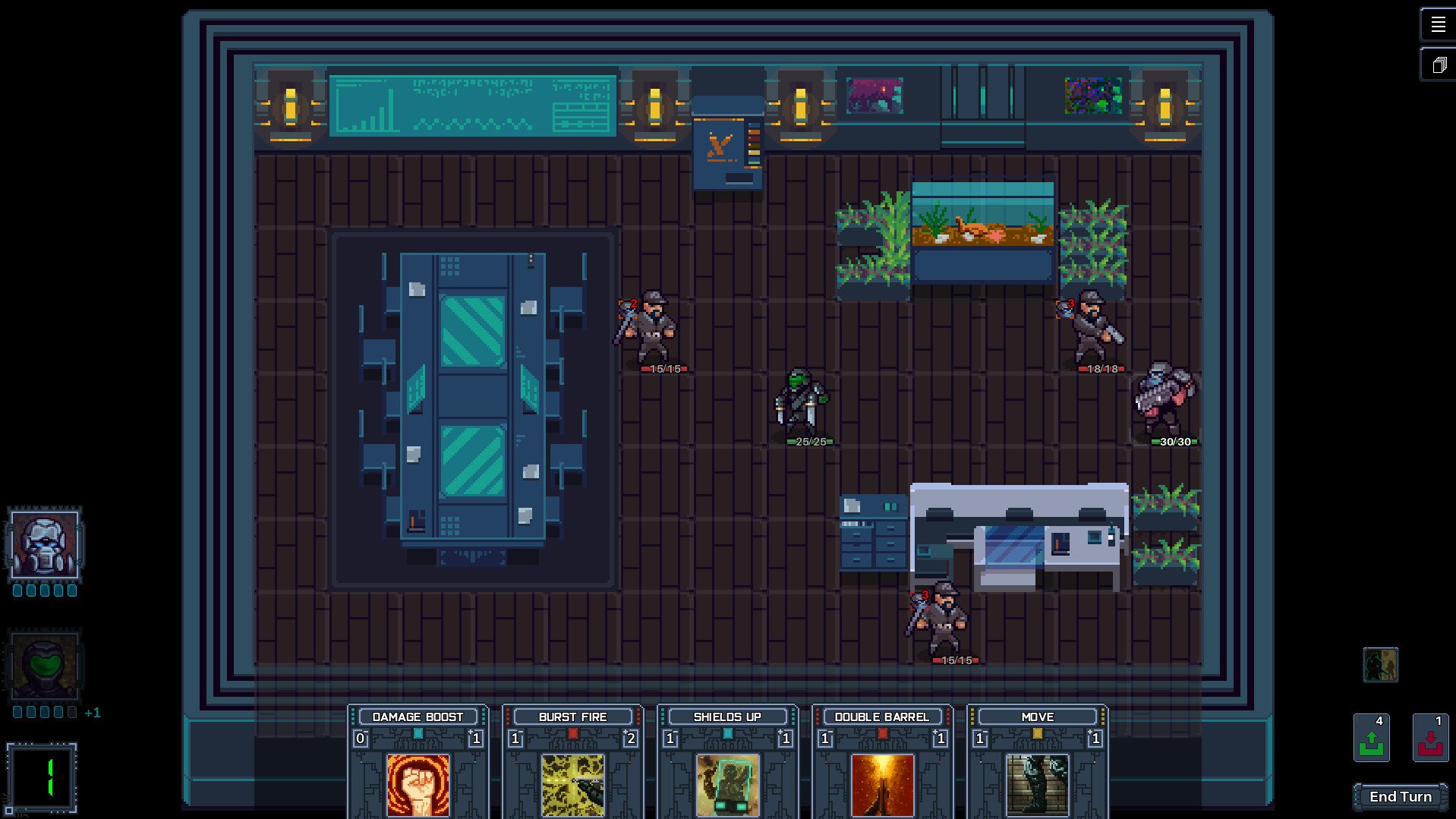 Hostile Takeover is a tactical turn-based game where you command a small team of contractors hired by mysterious corporate suits to take on seemingly impossible missions against dominant megacorporations. Each contractor is equipped with custom cybernetics that grant them a wide range of abilities, all represented by action cards. These cards dictate combat actions such as movement, attacking, defending, and unleashing special abilities.