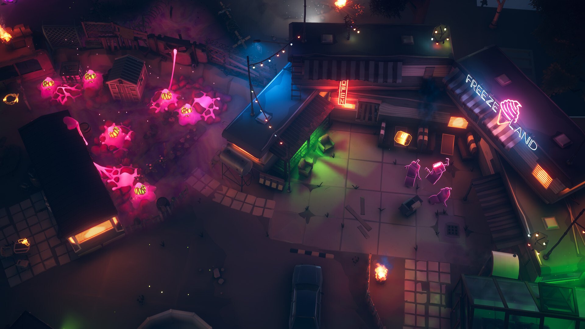 From Space is an action-packed game where you and your squad are tasked with liberating Earth from an endless horde of menacingly pink aliens. Your mission is to defeat these alien invaders and save the planet. The game features a high-energy "Horde Mode" where you and your team are deployed into unique locations to complete objectives while surviving increasingly difficult waves of pink life forms.