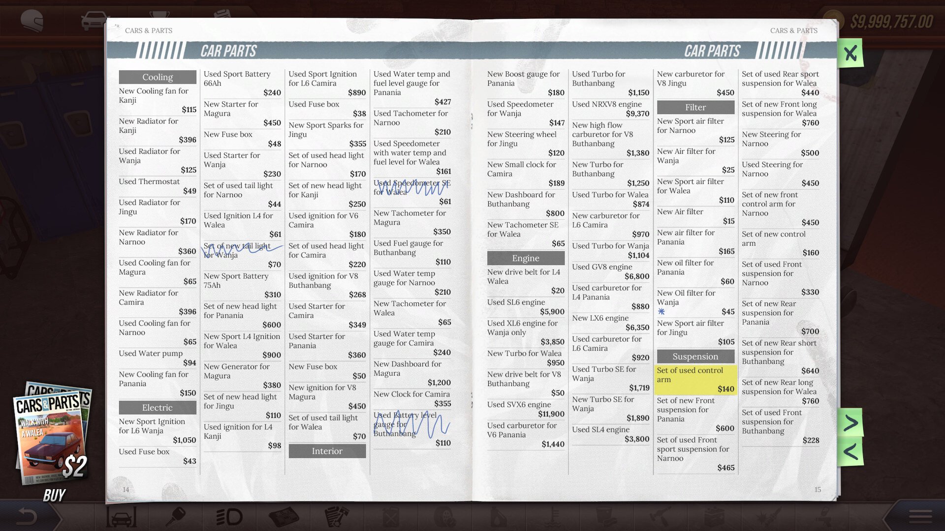 - Buy, sell and salvage wrecks and used components to save money or customize builds