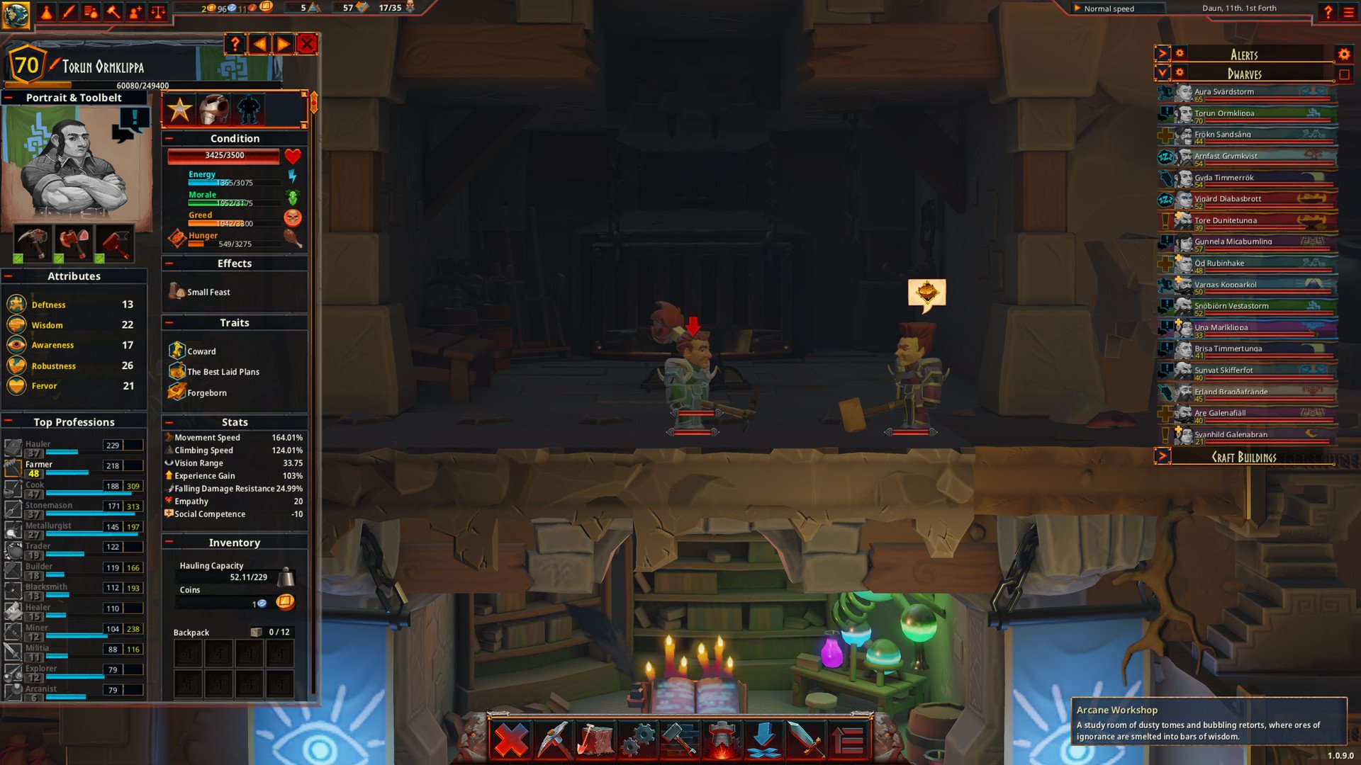 The game features colorful personalities, with each Dwarf uniquely defined by their stats, ancestry, traits, abilities, equipment, and more. You must exploit their strengths and manage their weaknesses to achieve success. Skilled craftspeople can create exceptional items, with every hammer strike on an anvil offering a chance for a critical result, leading to better and improved gear.