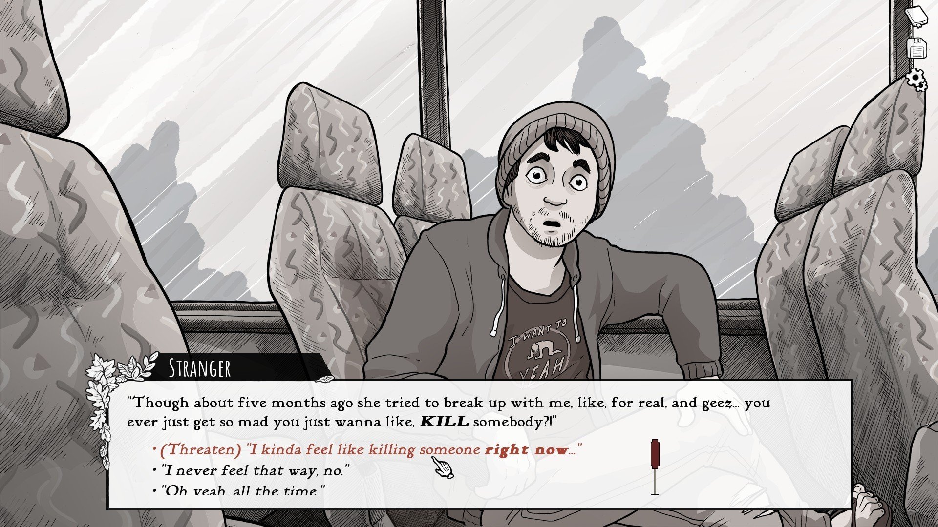 • RPG-style character traits. Pick from 21 different builds (quiet observer, impulsive fool, animal whisperer, and more) to unlock unique dialogue options and alter your path.