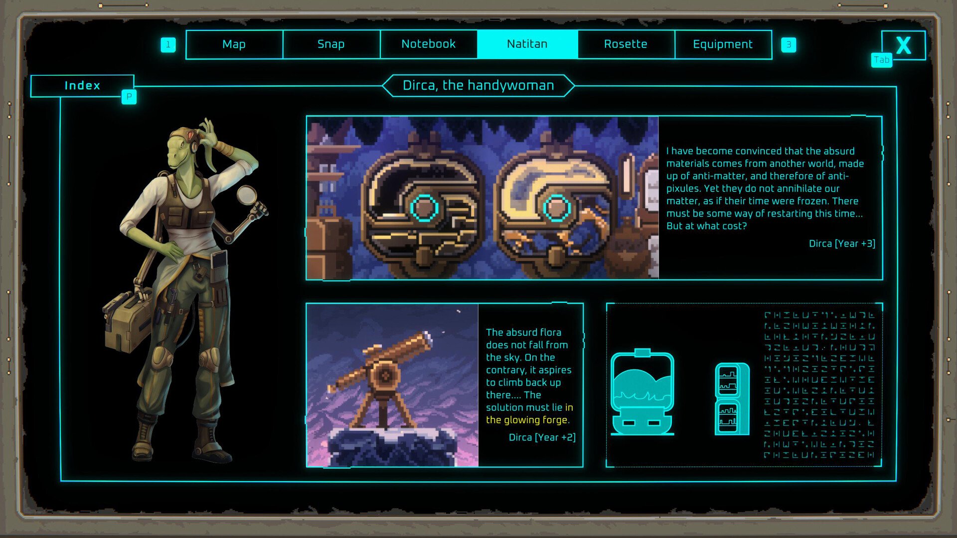 Developed by SciFunGames and envisioned by science fiction author and physicist Raphaël Granier De Cassagnac, Exographer brings a fresh twist to puzzle-solving by centering gameplay around the discovery and manipulation of elementary particles. The world of Exographer dazzles with intricately detailed pixel art, and its immersive atmosphere is heightened by an evocative soundtrack composed by Yann van der Cruyssen, known for his work on Stray.
