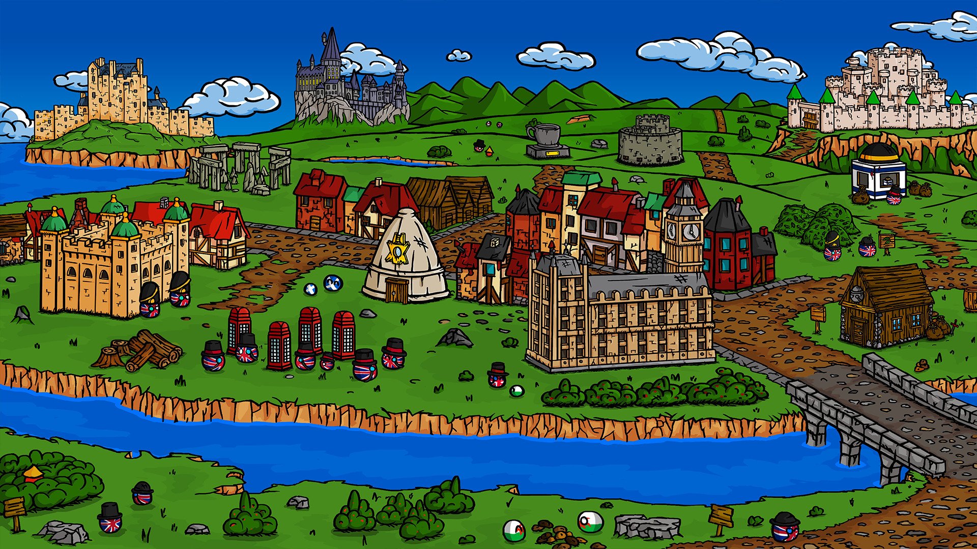 As you progress, you'll recruit powerful heroes to guide your troops and unlock magical abilities and potent artifacts. The game’s campaign, inspired by some of the most iconic Countryball memes, offers an entertaining storyline full of ironic humor and unexpected twists. Stereotypes and memes play an active role on the battlefield, adding that extra layer of fun and challenge to your conquests.