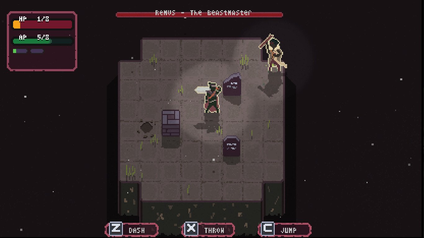 A key strategic element in Undergrave is managing your stamina, which regenerates gradually with each turn. Every decision, whether to attack or reposition, must be balanced with how much stamina you have available. The challenge lies in combining your jump, dash, and throw to create the perfect attack or escape plan in a dynamically changing battlefield.