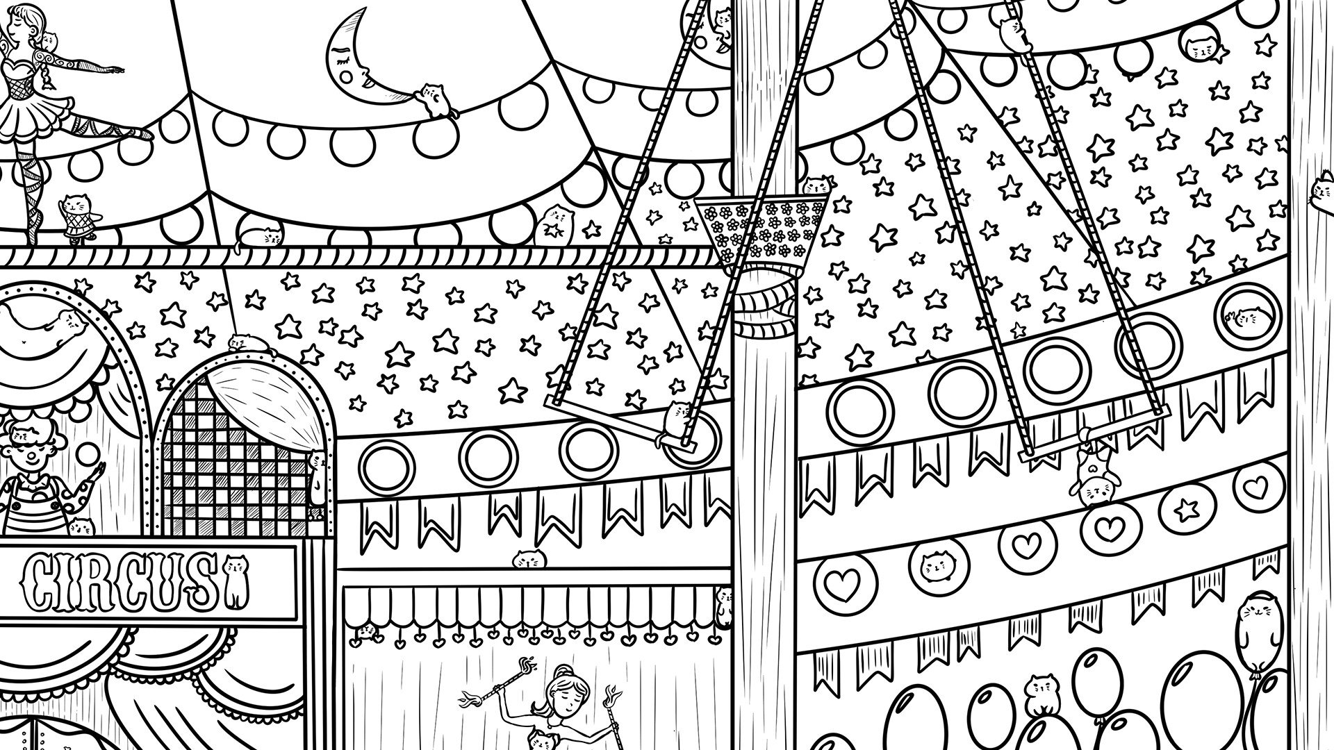 • Stunning, high resolution hand-drawn artwork set in unique circus-themed locations.