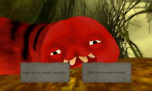 Once upon a time in a dreary swamp, a weak and weary fly awoke with an insatiable hunger. Unable to find a corpse in a land of tortured life, the fly set off on a bizarre journey through a world filled with surreal and grotesque inhabitants. As you, the dirty, filthy, corpse-eating fly, you must venture on a daunting quest to devour a monstrous creature lurking in a distant house’s bath.