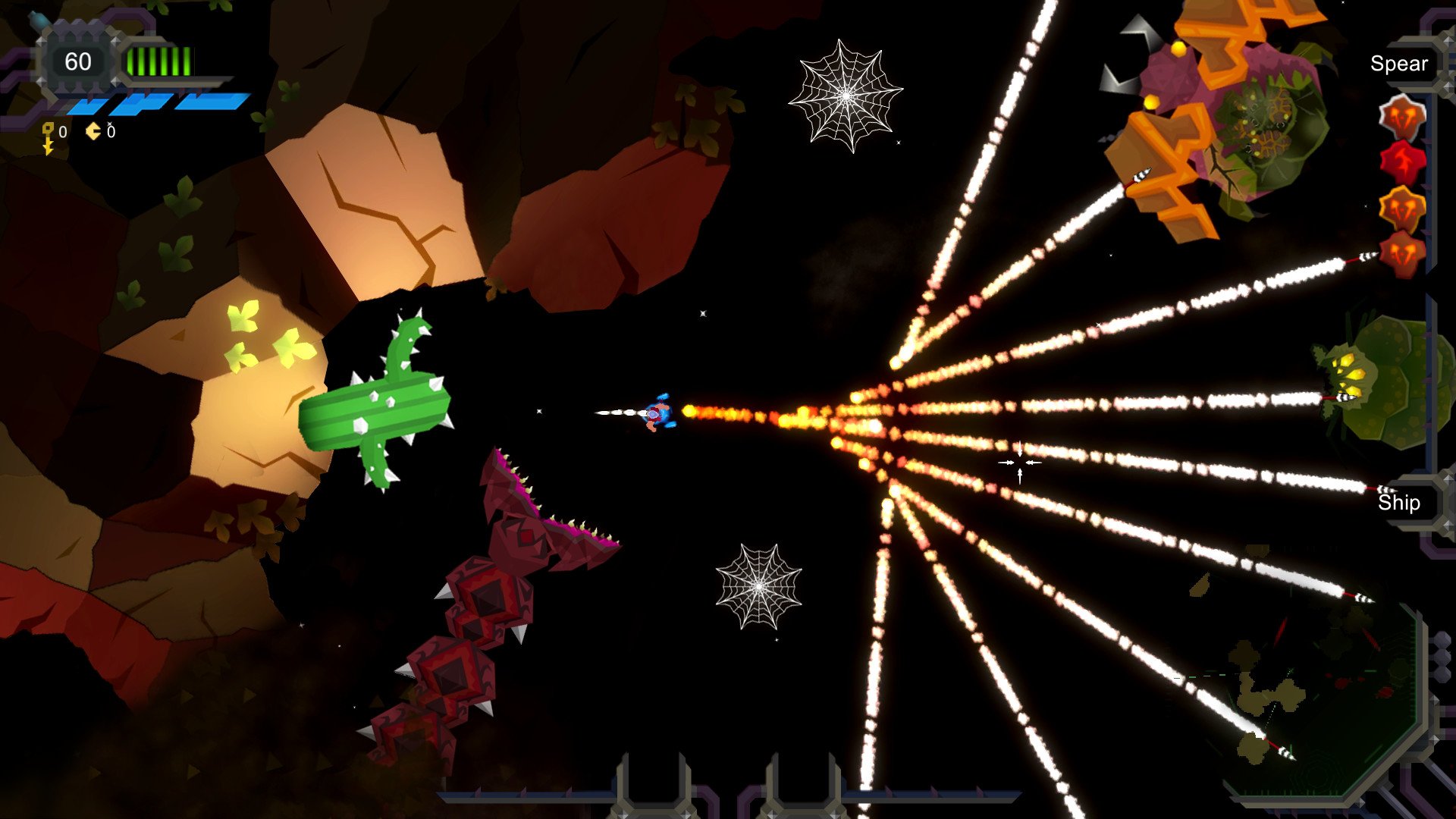 The game continuously pushes the boundaries with its fully destructible environments. Whether it’s blasting through ancient ruins with your spear or carving pathways with your harpoon, every action leaves a mark on the world around you. The procedural levels ensure that no two playthroughs are alike, offering near-infinite replayability and constant freshness even after multiple runs.