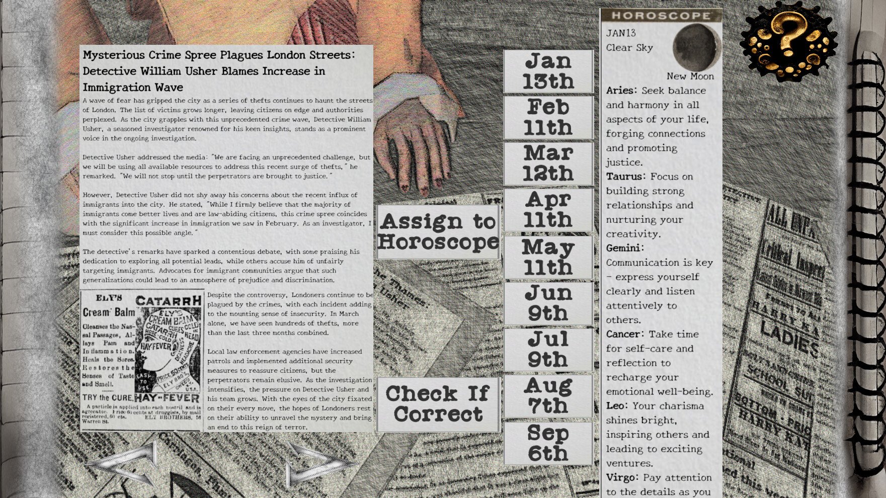 As she navigates the shadowy streets of London, players guide Mini through an array of contrasting environments, from the lavish mansions of the elite to the grim industrial factories and even the murky depths of the city's sewers. Along the way, Mini interacts with a diverse cast of characters, each hiding secrets and personal motivations. By piecing together clues, interrogating suspects, and uncovering contradictions in what they say, she must gradually reveal the truth behind not only her husband's tragic demise but also a series of interwoven fates destroyed by sinister forces.