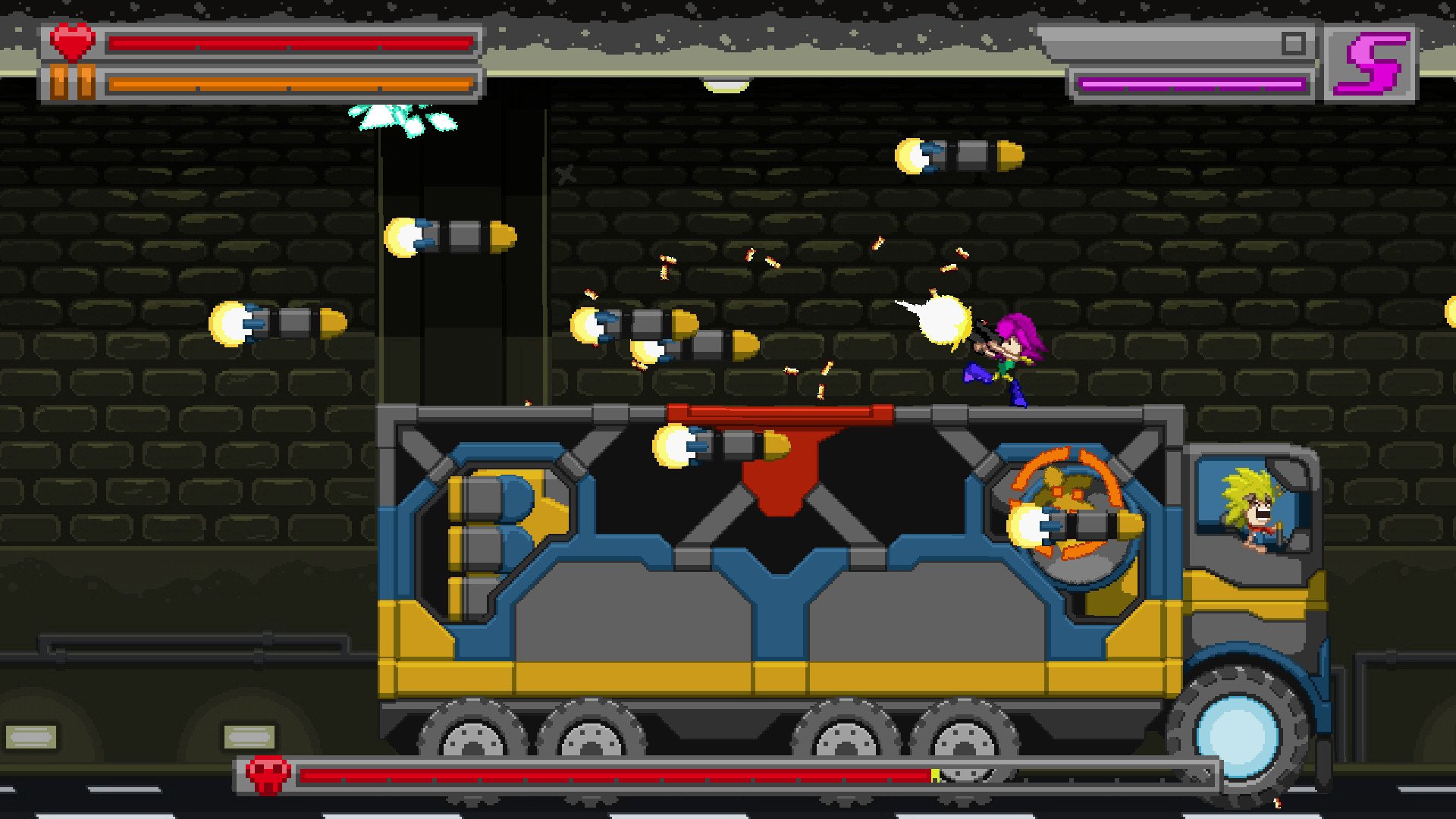 Bleed 2 is a fast-paced, relentless arcade action game that challenges you with its innovative air-dodging, bullet-reflecting, and non-stop boss battles. You step into the shoes of Wryn, the world's greatest—indeed, the only remaining—hero tasked with combating an invading force of villains and reclaiming your title as the Greatest Hero of All Time.