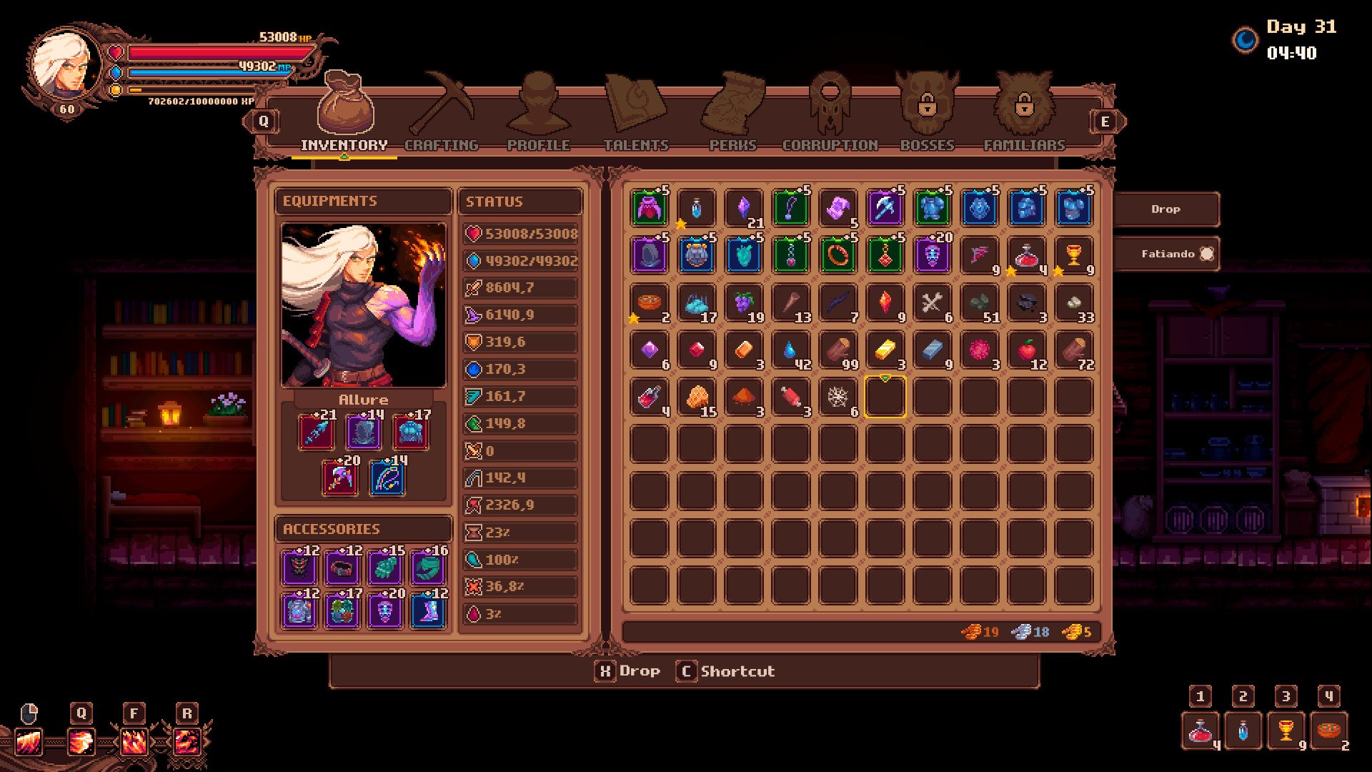 The game doesn't just stop at the cycle of day and night; it also features a robust multiplayer co-op mode where five distinct heroes—each with unique skills and abilities—can team up. The rich RPG elements include an impressive array of systems like dungeons with varying difficulty levels from Normal to Mythic+, a dynamic loot system with equipment that comes with diverse affixes and suffixes, relics, perks, and a comprehensive crafting system. Whether you’re blacksmithing, cooking, or practicing alchemy, there’s plenty to engage your creative and strategic sides.