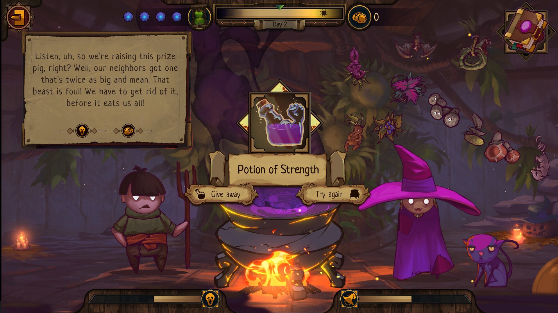 The Witch's Cauldron lets you step into the role of a powerful witch in a charming, magical world. In this game, you search for rare ingredients and combine them to brew unique potions, each with its own surprising effect. Exploring varied, mysterious environments, you’ll uncover hidden secrets and ancient lore while experimenting with different recipes to perfect your craft. Every decision matters, as the mix of ingredients can lead to unexpected outcomes, challenging you to think strategically and creatively. With its engaging puzzles, richly detailed visuals, and a deep crafting system at its core, The Witch's Cauldron invites you to embrace your inner sorceress and master the art of magical potion-making.