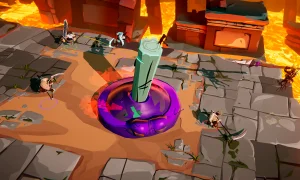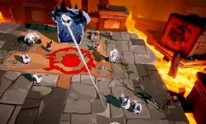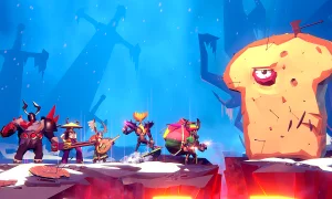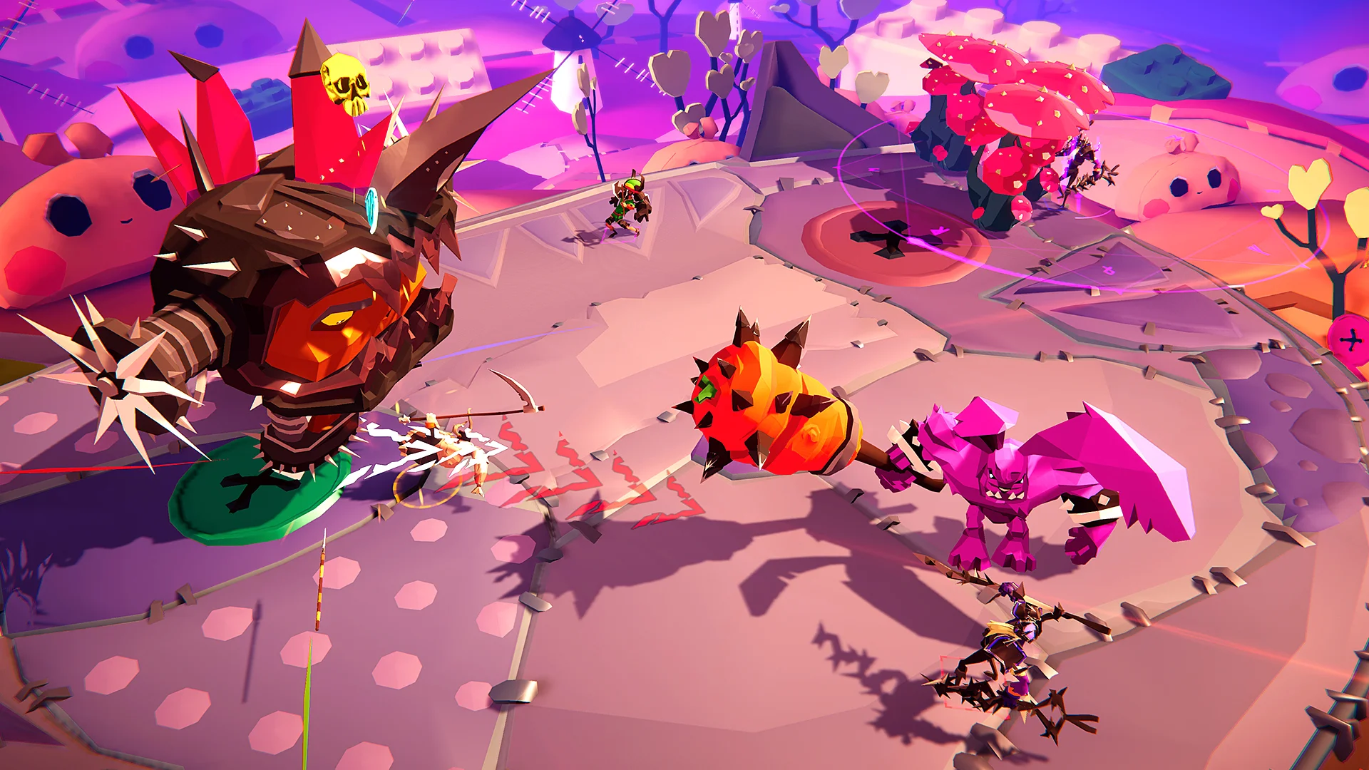 In a 1 vs. 5 setup, one player takes on the role of the boss against a colorful cast of cartoony Vikings.