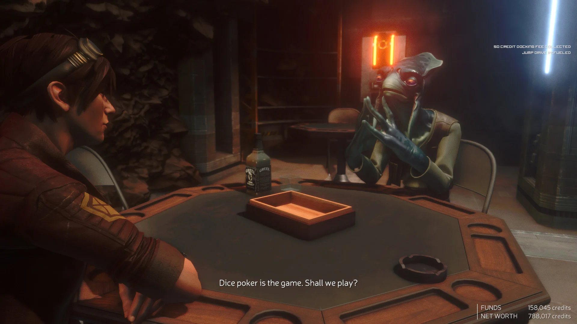 • Side Activities: Unwind in seedy cantinas by shooting 8‑ball, rolling dice‑poker, or chasing high scores in arcade machines. Hunt hidden riches, join guilds, buy your own station and even help stranded pilots for extra cash.