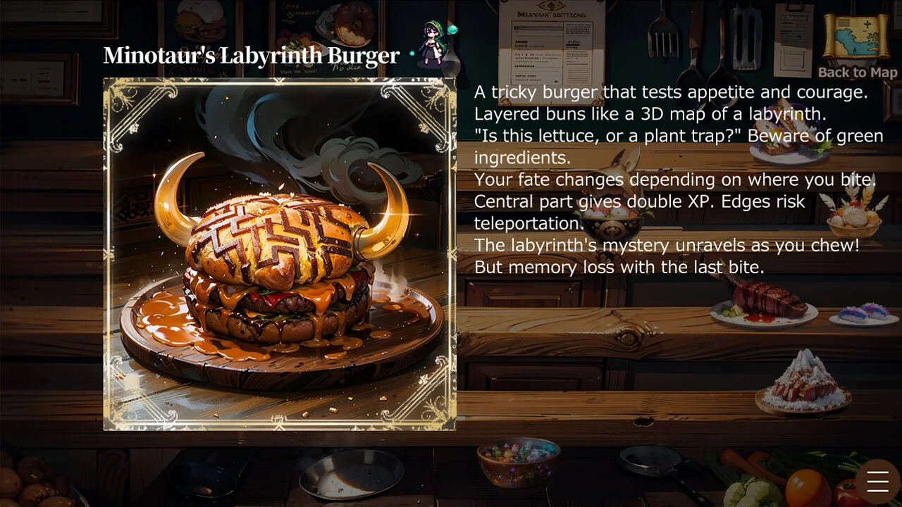 Bistro Brave – Five years after vanquishing the Daemon Lord, you’ve traded sword and sorcery for stove and skillet by opening your very own evening bistro. Peace has reigned, but a new shadow lurks just beyond your warm, lamp‑lit dining room. Former allies and even past foes drop in to sample your remarkable fantasy cuisine—40 exotic dishes ranging from Goblin Gem Soup to Behemoth Sirloin Steak—and to share their stories.
