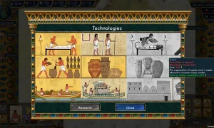 Experience over 100 dynamic events—from tribal migrations and enemy invasions to religious rituals and grand celebrations—that shaped early Egyptian society. Unlock 48 historically accurate technologies and cultural achievements, charting humanity’s progress from simple stone tools to the foundations of statehood.
