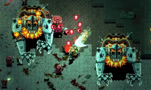 You’ll unlock several upgradeable heroes, each with its own skill tree, special abilities and cosmetic options. Wreck gods with your cybernetic arm as the Cyberserker, slice through enemies as a stealthy Dark Elf, charge in as a ferocious Viking Moose, dig up gold and upgrade gear as a stubborn Dwarf, or go berserk with dual miniguns as a manic Gnome.