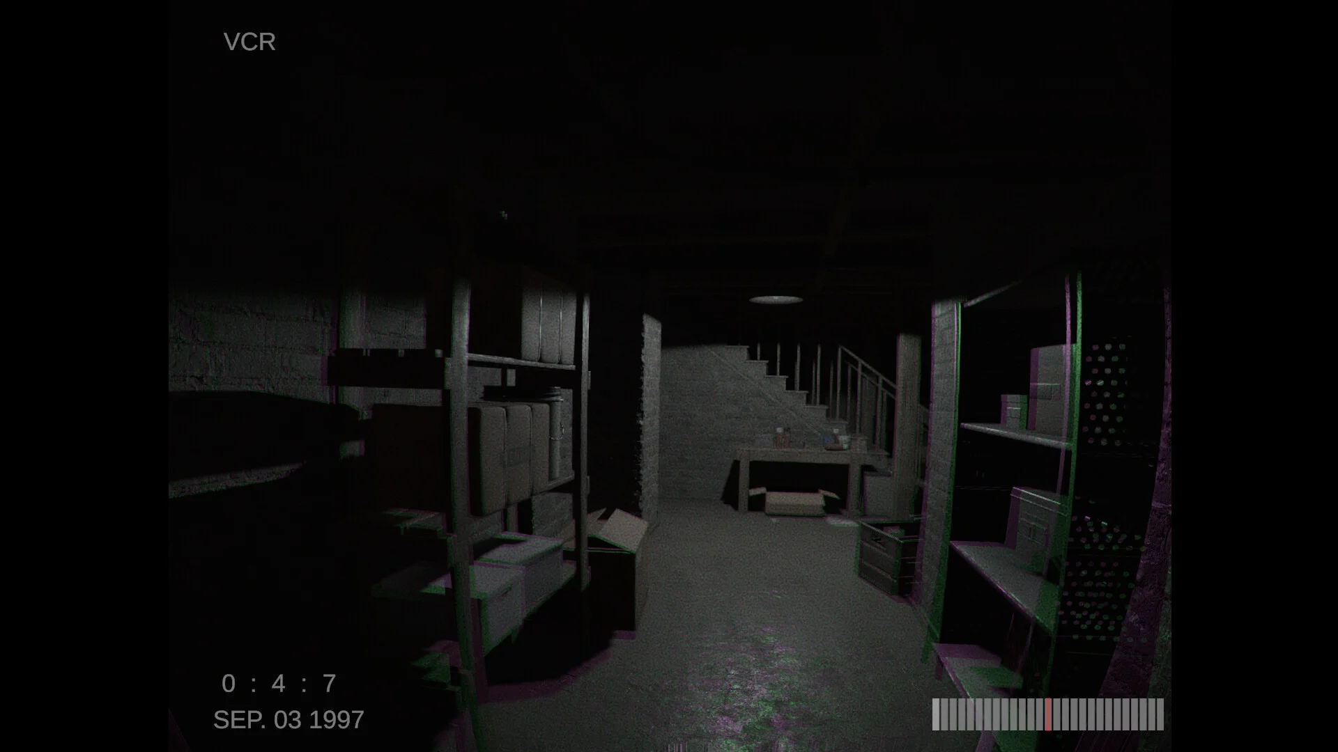 • VHS camera view – Explore through the grainy, eerie lens of an old tape recorder.