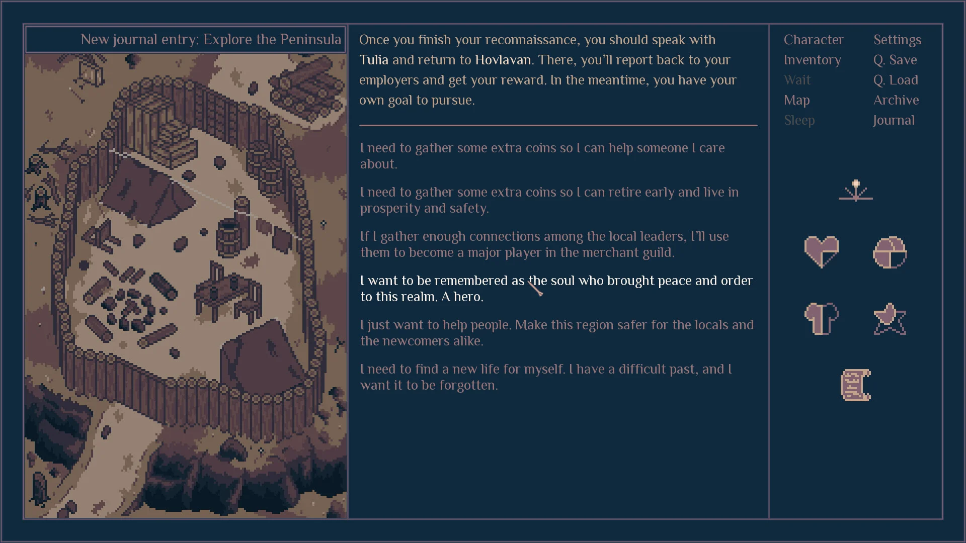 Roadwarden – a grim fantasy illustrated text-based RPG that blends isometric pixel art with mechanics from RPGs, adventure games, visual novels and interactive fiction. You step into the boots of a lone guardian hired by a powerful merchant guild to patrol a dangerous, largely unexplored peninsula. Your duties range from escorting travelers and supplying isolated villages to fending off bandits, monsters and even the undead.