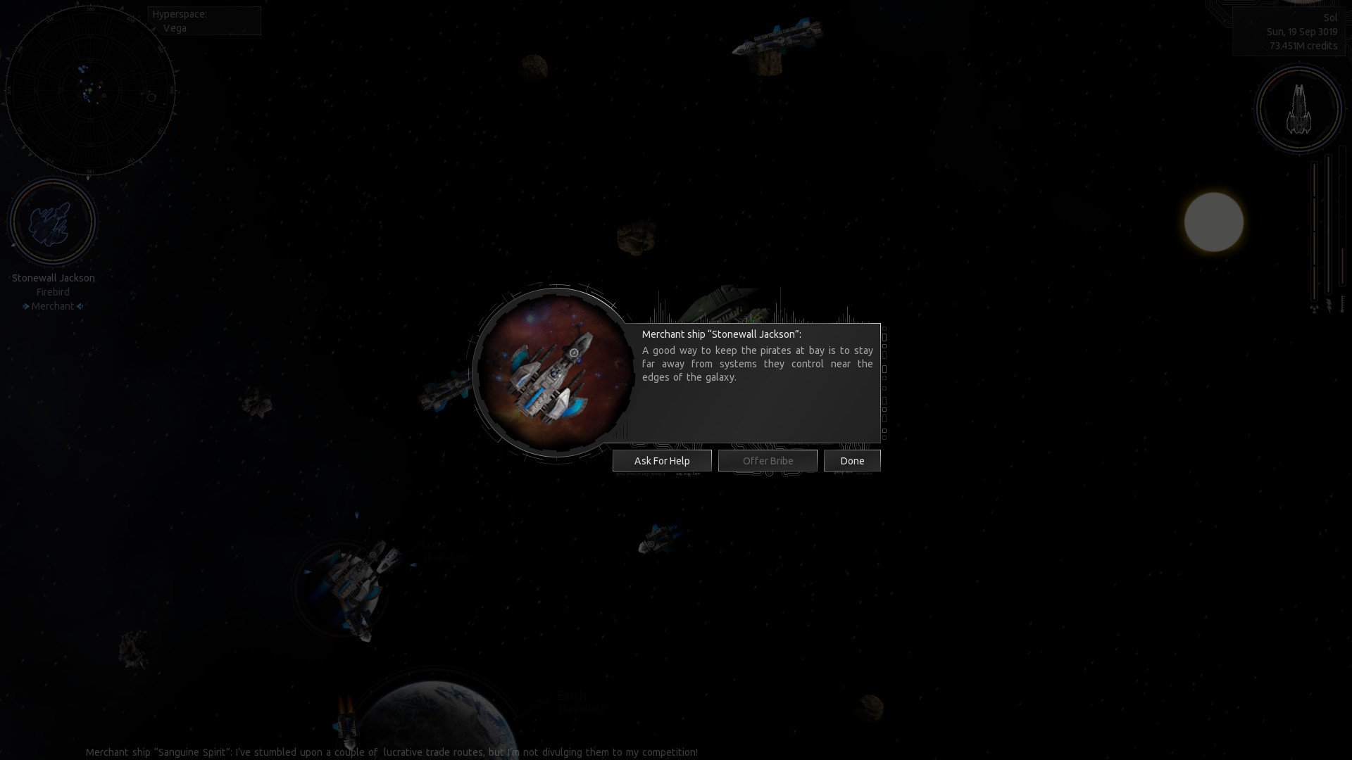 Endless Sky is a captivating 2D space trading and combat game that draws inspiration from the classic Escape Velocity series. Players start with a modest shuttle, cargo ship, or fighter and work their way up to commanding a highly upgraded flagship or an entire fleet of warships and freighters. The game offers various ways to earn money, such as transporting passengers or cargo, escorting convoys, bounty hunting, or capturing enemy ships. Players can choose to engage in a civil war storyline or simply explore the galaxy and battle pirates at their leisure.