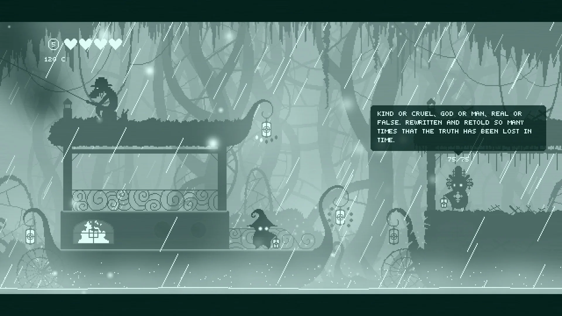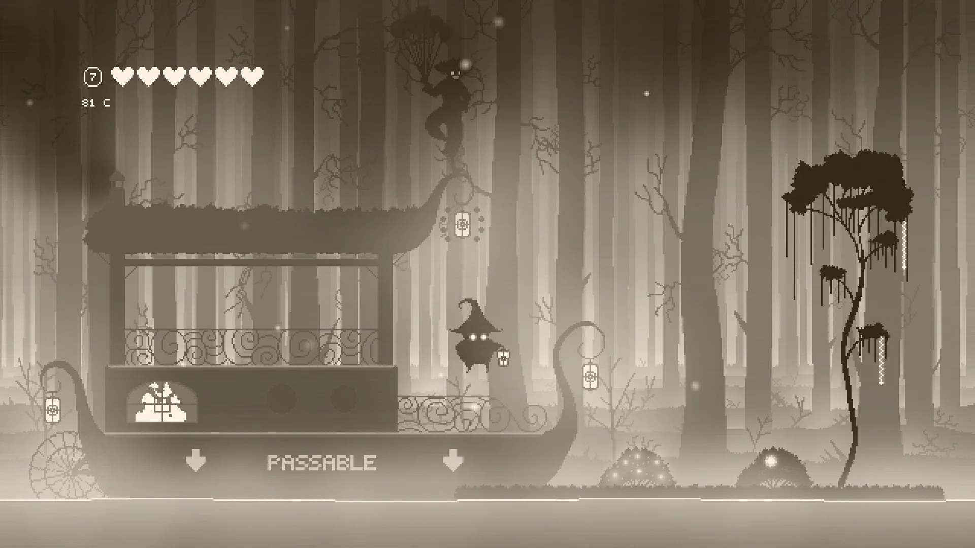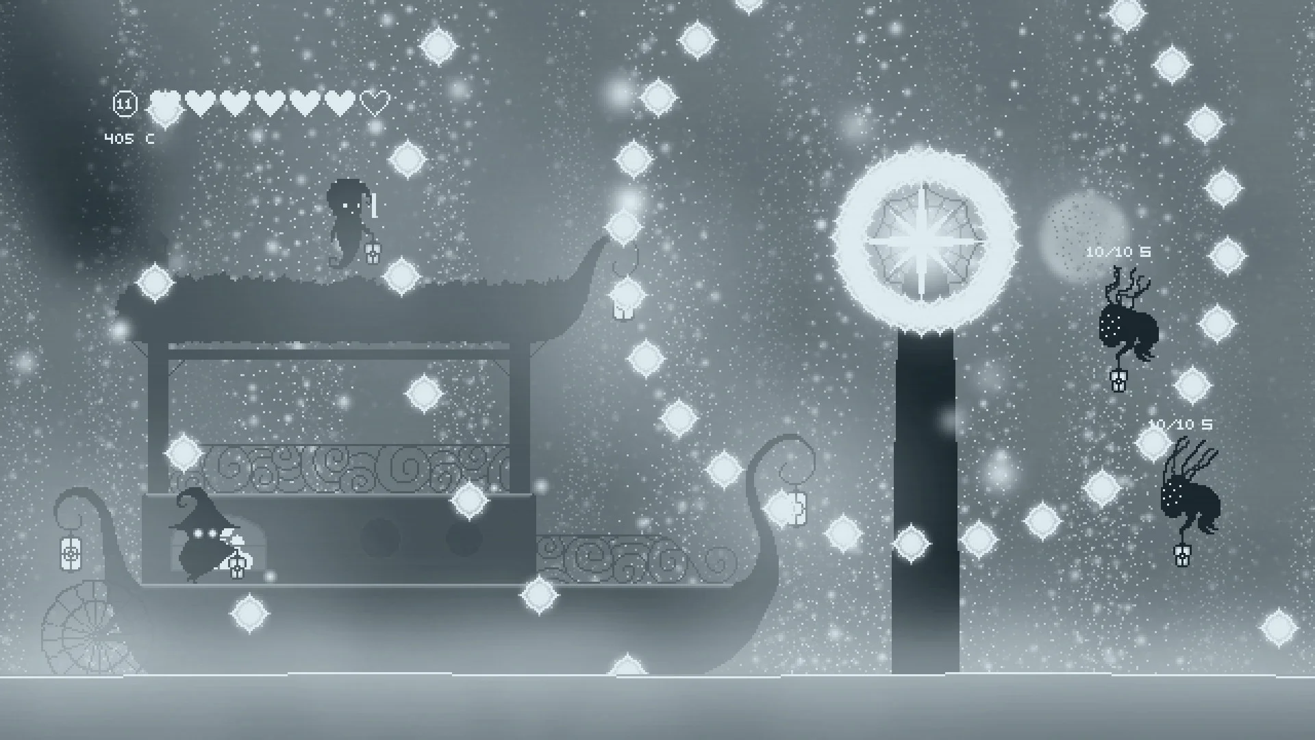 All of this plays out in a striking monochrome pixel art style, backed by an eerie, immersive soundtrack. The visuals capture a dreamlike, almost storybook quality, while the music tugs at your emotions with subtle melodies and ambient textures.