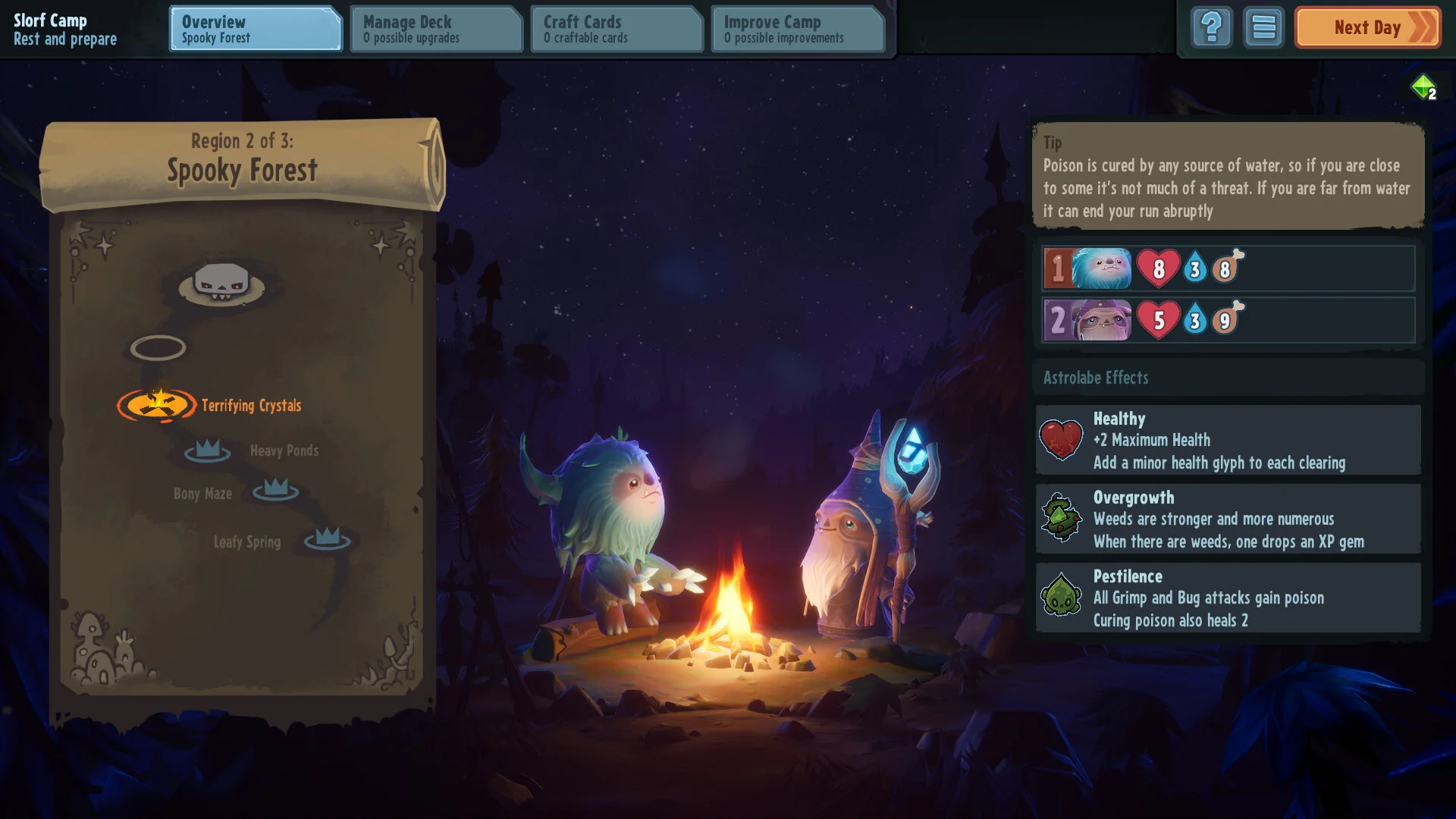 Beyond the battlefield, ZOR’s survival mechanics introduce a layered challenge. Between clashes with deadly beasts and environmental hazards, you must scavenge resources while hunger and thirst steadily erode your forces. At camp, choices loom large—will you press onward to explore deeper clearings, expand your deck through crafting, or upgrade your most vital cards with hard-won experience?