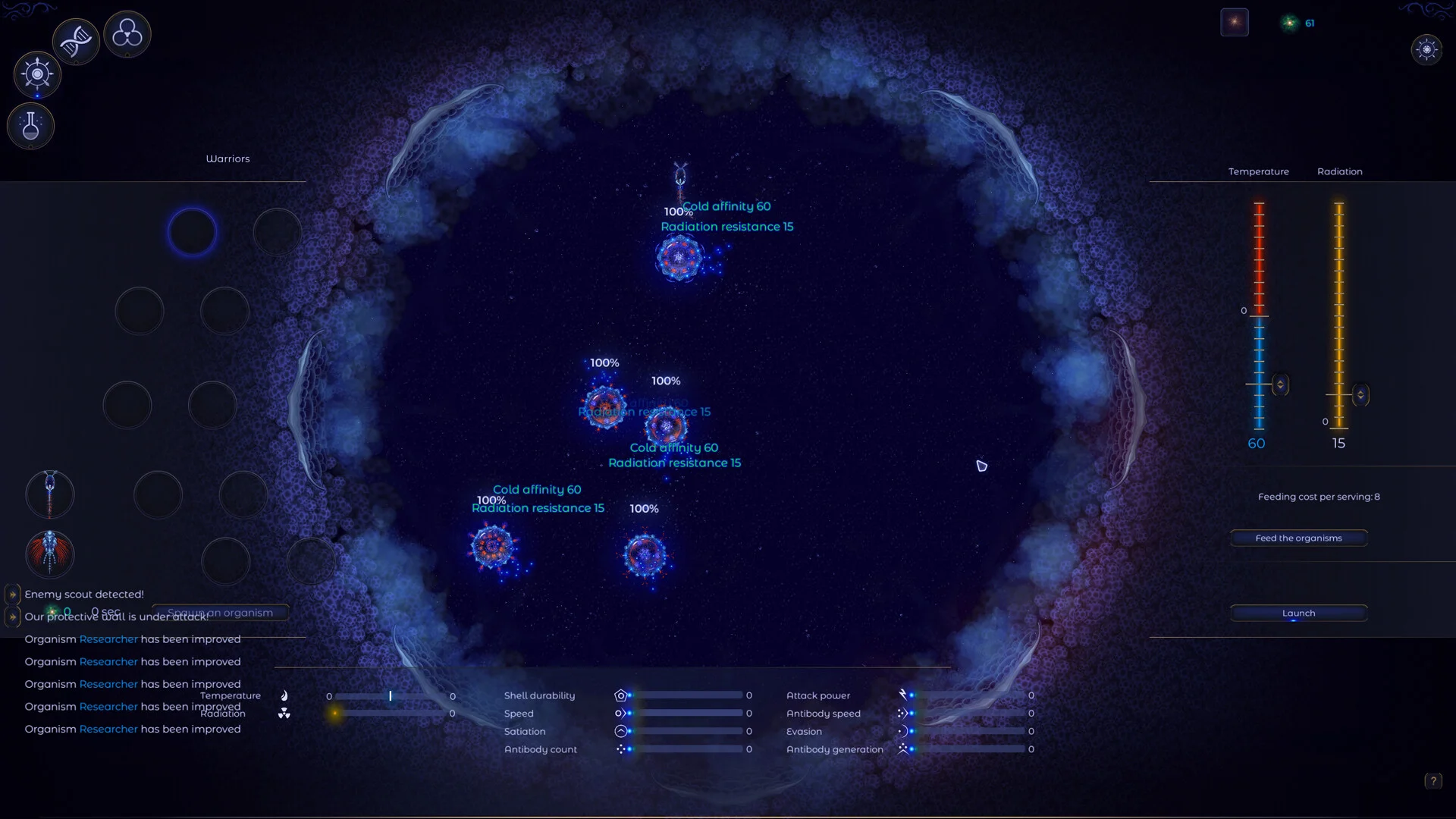 – Mutate or acclimatize organisms in the incubator for unique bonuses