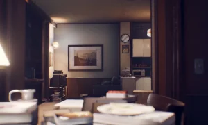• A rich, atmospheric environment that encourages slow exploration of a detailed, multi-floor hotel