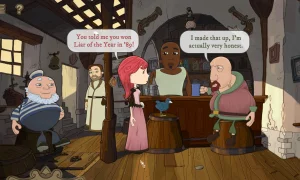 Every location, from the sun-drenched docks of Port Rubicund to the frozen heights of Gloomholm, is packed with lovingly animated details and more than forty unique characters. The trophy cabinet includes a surprise cameo by Tom Baker, and the script—all voiced in both English and German—is as funny at age nine as it is at ninety. Puzzles range from gently teasing to mind-bending, but even on an off-day they’re so well designed you’ll never feel truly stuck.