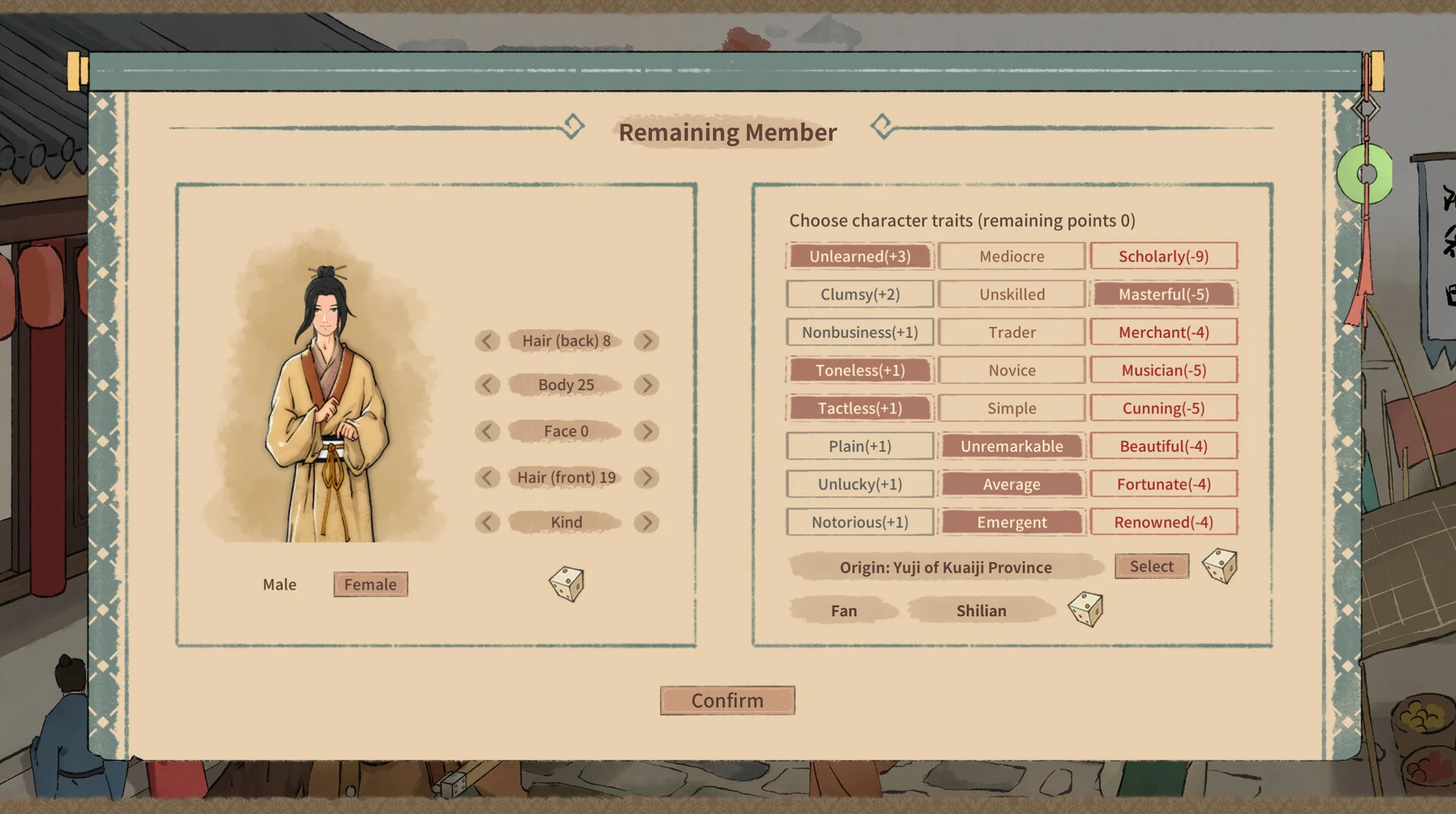 Educate heirs in literature, martial arts or governance. Marry them into influential families, groom talented kin for official careers, and secure your clan’s prominence for generations to come.