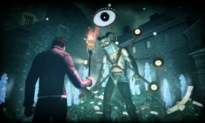Shadows of the Damned Hella Remastered throws you into a blazing, blood-pumping road trip through the most twisted corners of the Underworld. You play as Garcia Hotspur, a foul-mouthed demon hunter fueled by rock ’n’ roll, and his skeletal sidekick Johnson. Together you’ll plunge into nightmarish realms to rescue Garcia’s beloved Paula from the iron grip of Fleming, the Lord of the Underworld.