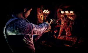 Along the way you’ll exploit a unique light-and-dark combat system: demons thrive in shadows but shrivel under illumination. Switch between Garcia’s trusty gun and Johnson’s flashlight blasts to clear the darkness and blast through demonic hordes.