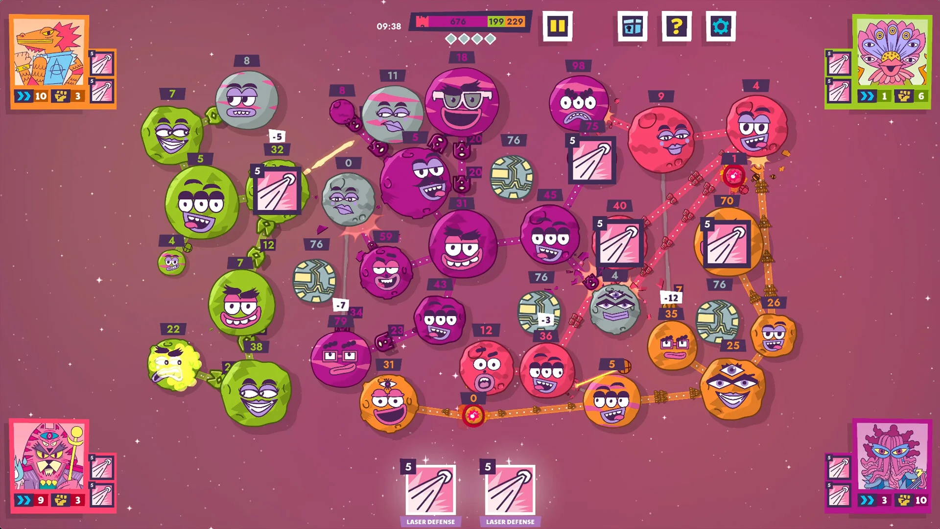 • Distinct alien factions: Begin your conquest as either the tough, street-smart Sasharkpas, the eccentric genius Fringlots or the efficient Practwomms. Progressing through the game unlocks even more diverse races, each with unique abilities and playstyles.