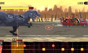 Double Kick Heroes is an exhilarating fusion of rhythm gaming and shoot'em up action, offering a unique experience for fans of both genres. The game throws you into a post-apocalyptic world where the only way to survive is by blasting through hordes of zombies with the power of Metal music.