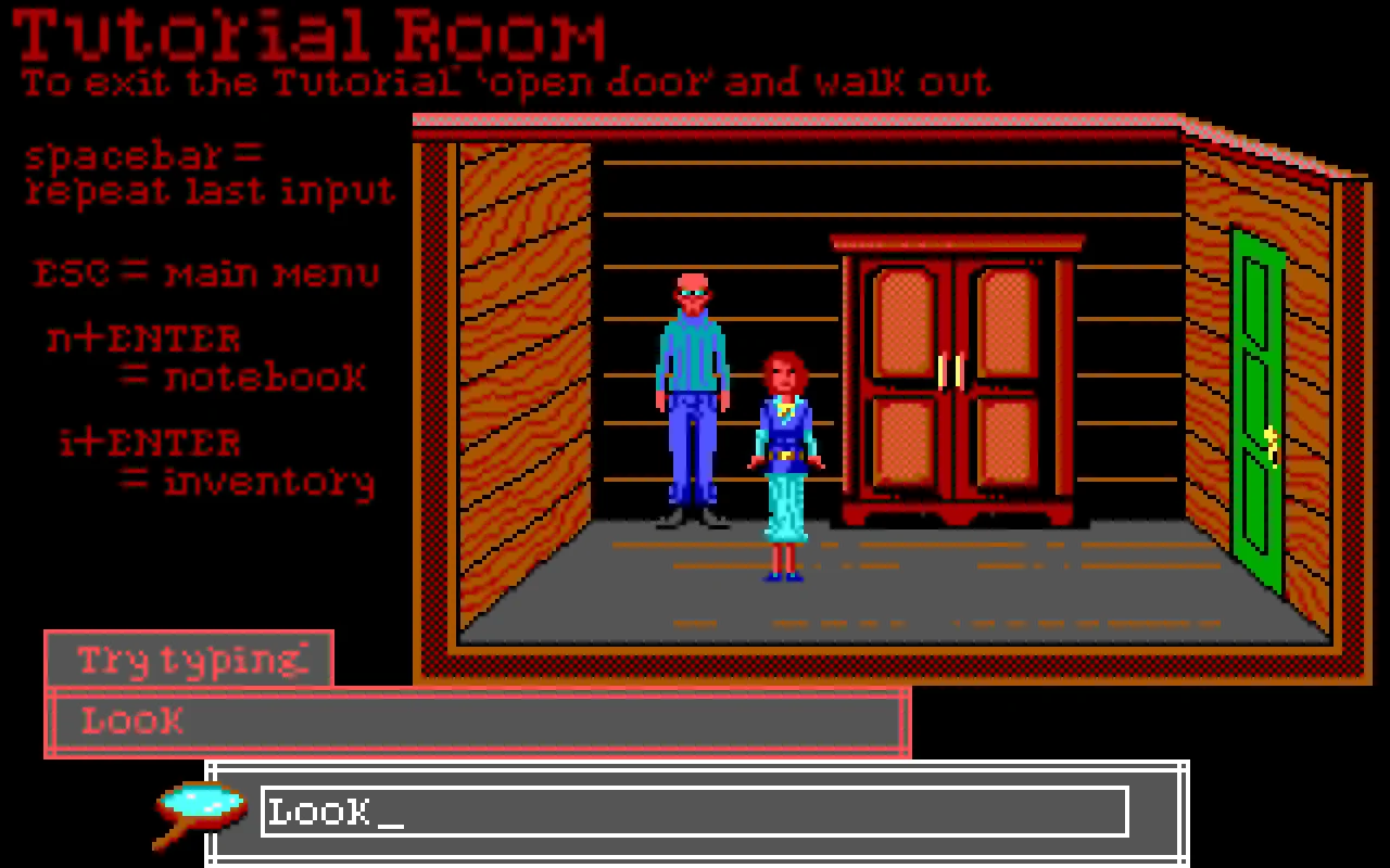 • EGA-style visuals paired with a classic text-parser interface—just like the golden age of ’80s and ’90s adventure games.