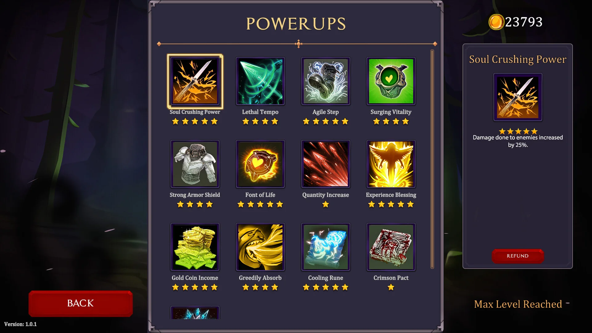 - Gold & Permanent Upgrades - Gather gold during battles and invest it in passive skill upgrades that persist across runs. Every dollar you spend makes future attempts more manageable.