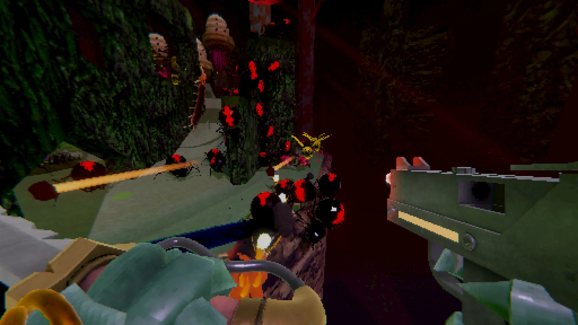 Killbug throws you into the twisting tunnels and cavernous halls of a brutal insect world, where you play the exiled warrior seeking vengeance against the swarming horde that clipped your wings. Armed with a razor-sharp blade and a hungry SMG, you’ll carve a path of carnage through wave after wave of beetles, spiders and monstrous larvae bent on your destruction.