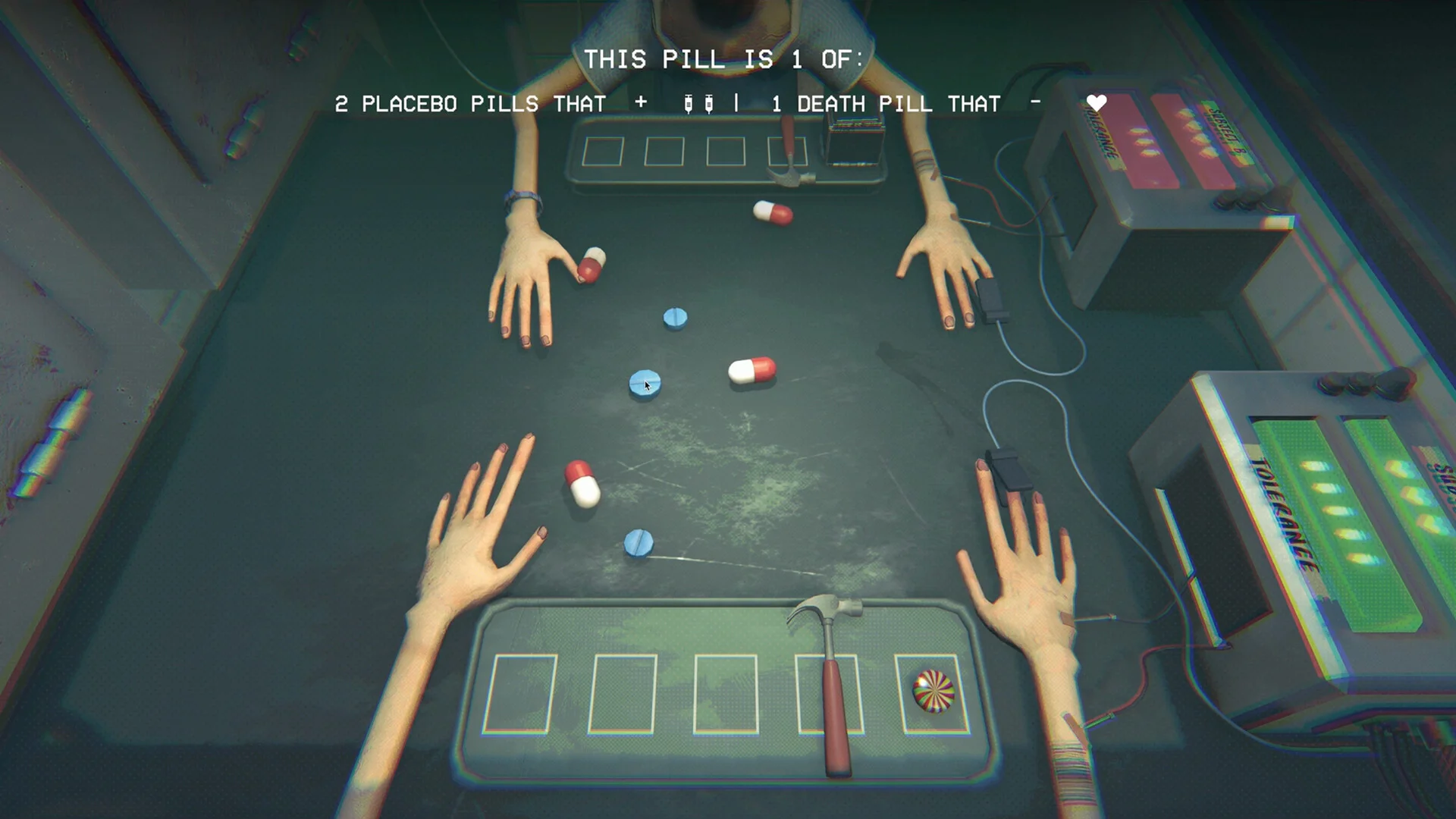 - Tense, turn-based pill roulette gameplay